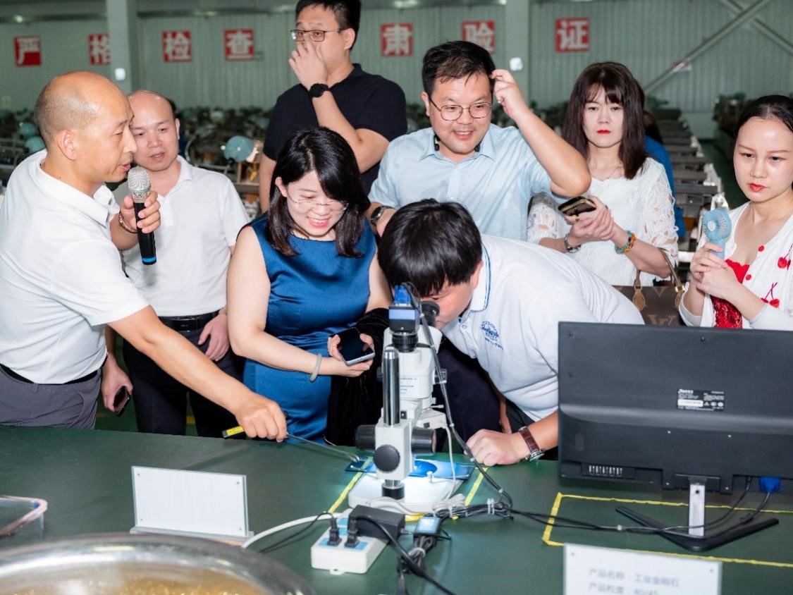 21日上午,同学们首先参观了郑州华晶金刚石股份有限公司,华晶金刚石成立于2004年12月,是一家集超硬材料及其制品产业链专业研究、生产和销售为一体的高新技术企业,为超硬材料行业栋梁企业和河南超硬材料产业基地的骨干企业。公司形成包括人造金刚石单晶(含金刚石普通单晶、大单晶金刚石)及原辅材料、培育钻石饰品的产业链,可广泛应用于机械石材、电子电器等传统应用领域,也可延伸至国防军工、航天航空、装备制造、电子技术、医疗器械以及珠宝首饰、艺术品等新兴应用领域。