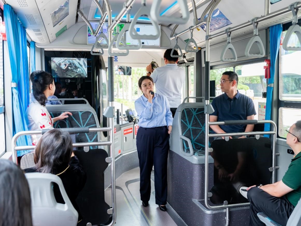 参观从宇通汽车的国内首个自动驾驶案例开始,该项目于2020年6月16日投入试运营,依靠5G信号覆盖、车路协同、人工智能、智慧站台、智慧场站等技术,给乘客带来了高效、便捷、准时、舒适的出行体验。