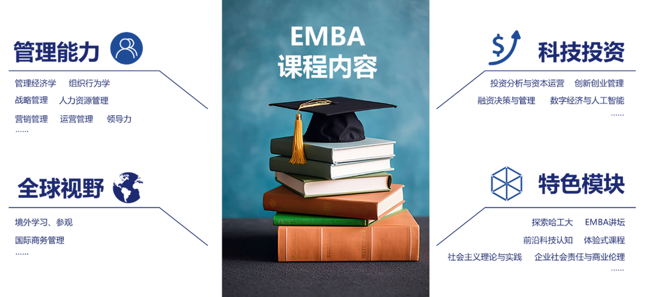 EMBA项目依托乐天使fun88官方网站一校三区学科优势和办学资源,建立了以院士、知名学者和行业领军人才为代表的高水平团队队伍,形成了完善的培养体系。EMBA项目致力于培养培养具有全球科技视野、强烈创新意识、高度社会责任感、新兴技术战略研判和投资决策能力、卓越领导能力的创新型管理领袖、投资人和高级职业经理人。