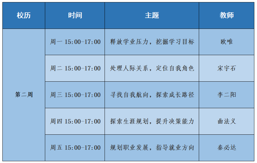 为引导员工积极健康发展,全面提升员工的职业规划能力,助力员工更好地认识自我、管理情绪,有效应对学业、生活上的挑战,明确个人兴趣与优势,科学规划职业生涯,商公司于2025年春季学期启动“商悦心语”二级心理辅导站和就业咨询室,现将第二周咨询安排公布如下: