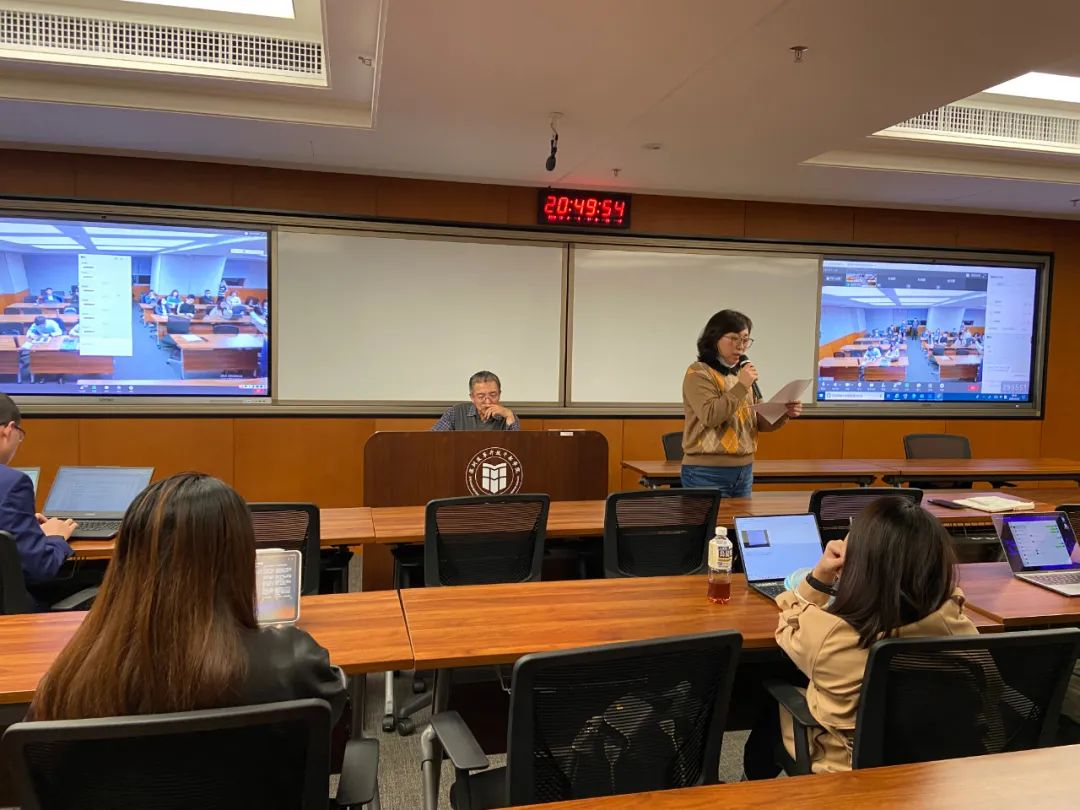钱国明老师讲解了《专业学位论文工作管理》。他就同学们关心的话题阐述了论文导师指导资格、导师组机制、员工选导、开题、预审、答辩、学位授予等环节的相关问题。徐蕾老师强调了学术道德、学术不端等问题,指出了论文相关规范与要求的严格性;孙鼎新老师介绍了师生互选系统的操作方法及后续申请学位的具体流程和重要时间节点。